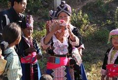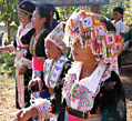 モン族のお正月最終日の鞠投げ。お帽子もとっても華麗。 |