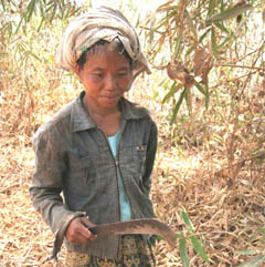 モン族と同様に先の曲がった鉄製の鉈鎌を使用する。