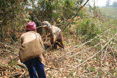 伐採(3月上旬)は、畑1.5haを3月7日(2005年)から行う予定。家族4人とそれ以外の村人が合計一日で10〜20人も関わる。