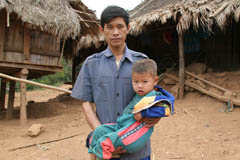 ラオリー村の地区団長のカワーさん(子供は4男のタオリー3歳)