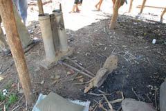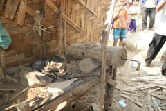 ハーサン村は、アタプーから南東にベトナムに向かう道路沿いにあるラベー族の村です。鍛冶場は、集落の高床住居下に存在する。鞴は金属製の対の筒型鞴で縦置きで使用する。送風管は鉄製パイプ2本で粘土製の羽口を使用している。