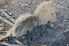 使用後に廃棄された羽口部分の粘土塊。二つに割れた状態。