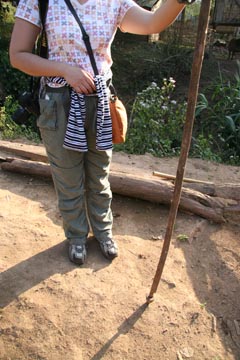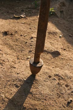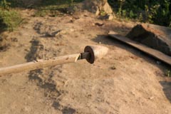 鉄製の頭をつけた掘り棒(ウドムサイ郊外のルー族の村)