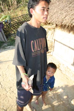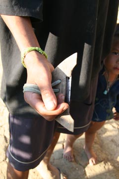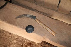 焼畑の穂積具ヴォと稲刈り用鎌(モン族のナンペー村)