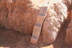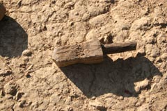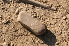 住居の周囲に置かれた道具。藁たたき、砥石(パントン村)