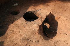 地下に臼を埋める(ウドムサイ郊外のパントン村モン族)