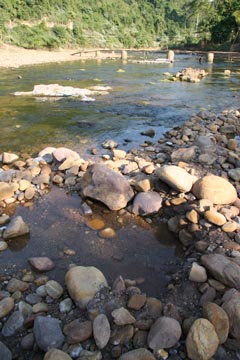 川底に湧く温泉(ウドムサイ北東ムアンラー郊外)