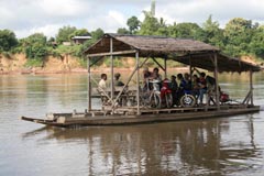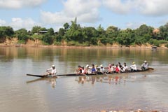 小舟で渡るメコン川(ファイサーイ)
