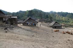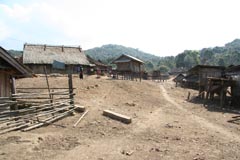 ラオス ウドムサイ県ラオリー村 民族:モン族 標高980m 2004年12月に聴き取り。 村は25世帯、193人が住む。50年前から村は存在する。ラオリー村の名称は、子孫の姓でラオのリーの人たちの村という意味である。 村の信仰は、精霊信仰で12月中旬(モンの正月)に精霊のまつりを行う。 隣村であるヤオ村には毎日人の行き来がある。ほかの村からも人が行き来し、鶏や卵を持ってくる。 ラオリー村の遠景(谷間にある尾根に集落が立地する) カラー